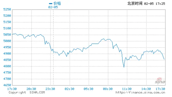 周四(2月5日)亚市早盘,现货金银持续走低!现货黄金一度重返5000美元上方,一度回落至4800美元/盎司下方,现报4863.98美元/盎司,大跌超2%。现货白银一度向下触及74美元/盎司,跌超16%。2、24小时国内金价走势图