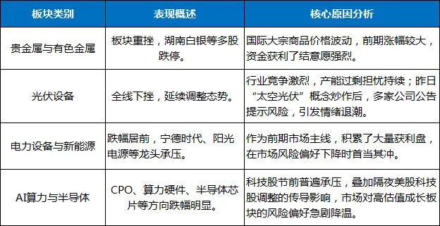 前期涨幅较大的周期资源类及部分科技成长板块遭遇大幅回调。