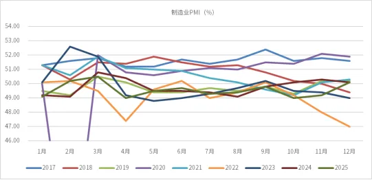 从企业规模来看,1月制造业PMI继续呈现出明显的结构性分化特征。大型企业PMI为50.3%,虽较上月小幅回落,但仍位于荣枯线以上,显示大型企业在订单、资金和抗风险能力方面仍具有一定优势。