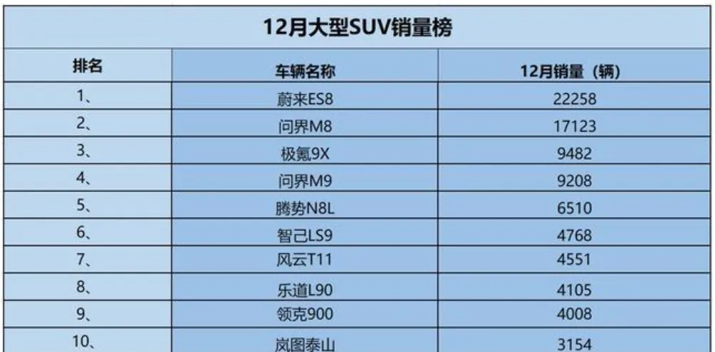 可岚图泰山在37.99万起、下打“8系”上挑“9系”的价格下,从首月的1500多台,到12月3154台,这份成绩显然算不上开门红。而作为对比,12月问界M8交付了1.7万台,蔚来ES8更是突破了2.2万,“9系列”当中,问界M9和新晋的极氪9X也均实现了9000+的月销量……那么在感叹8、9系旗舰SUV市场的火爆之余,泰山3000+的成绩虽然有产能影响,但也的确跟对手拉开了身位。