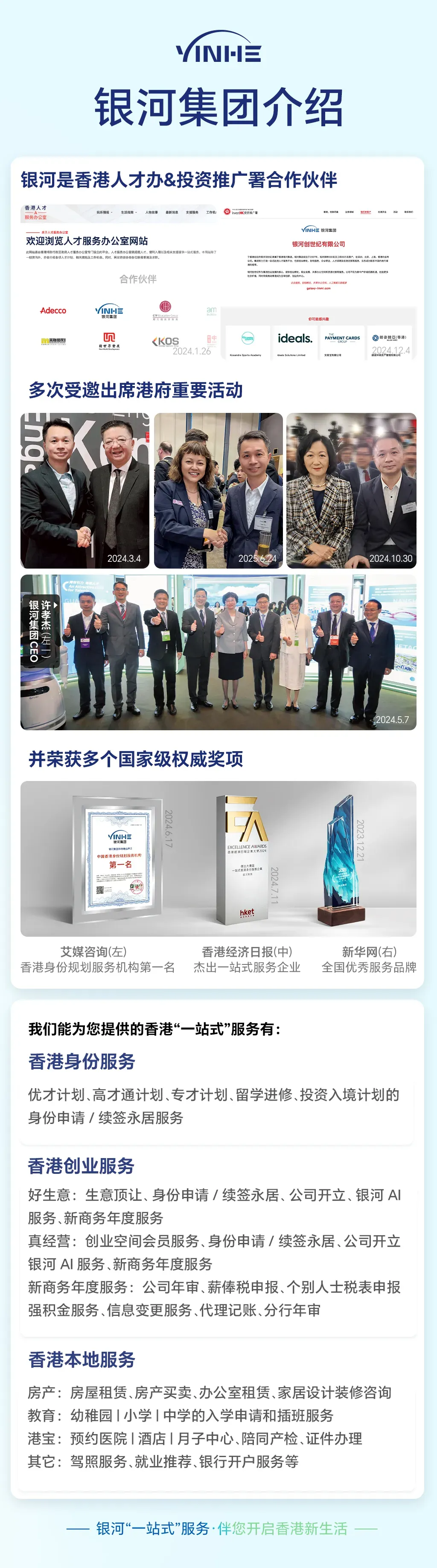 如果有香港出海需求,或是需要续签香港身份、香港公司注册、股权框架搭建、工位租赁、牌照申请、银行开户、年审、审计、报税、变更资料等,均可找银河集团办理,欢迎添加我们咨询(微信/电话:19007563909、18588497642),会有专业顾问为您详细解答↓↓