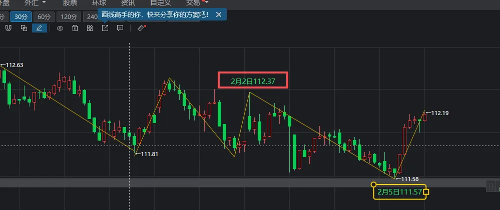 TL明日关注111.9-112.2一带支撑,上方关注112.32-112.94区域阻力。(如果没有其他指标辅助,压力位似乎有点远)