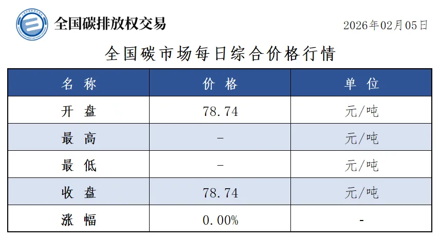 当前位置:首页>价格>【20260205】全国碳市场每日价格行情及成交信息