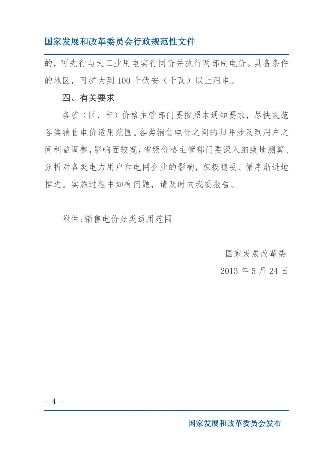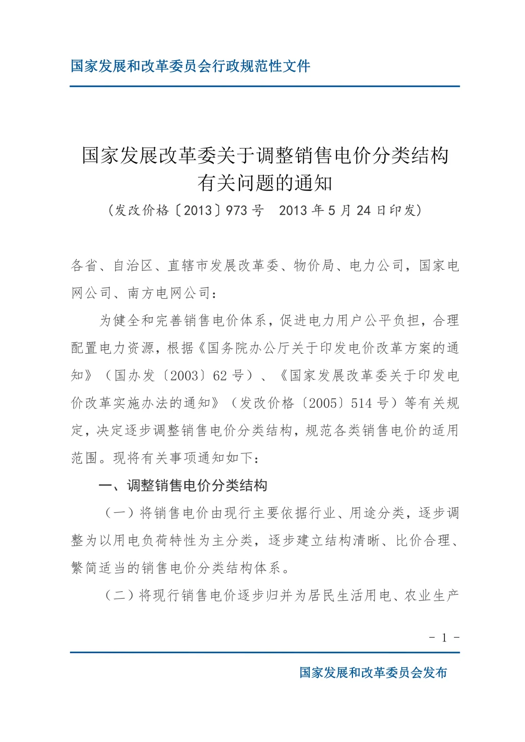 >发改价格[2013]973 号国家发展改革委关于调整销售电价分类结构有关问题的通知