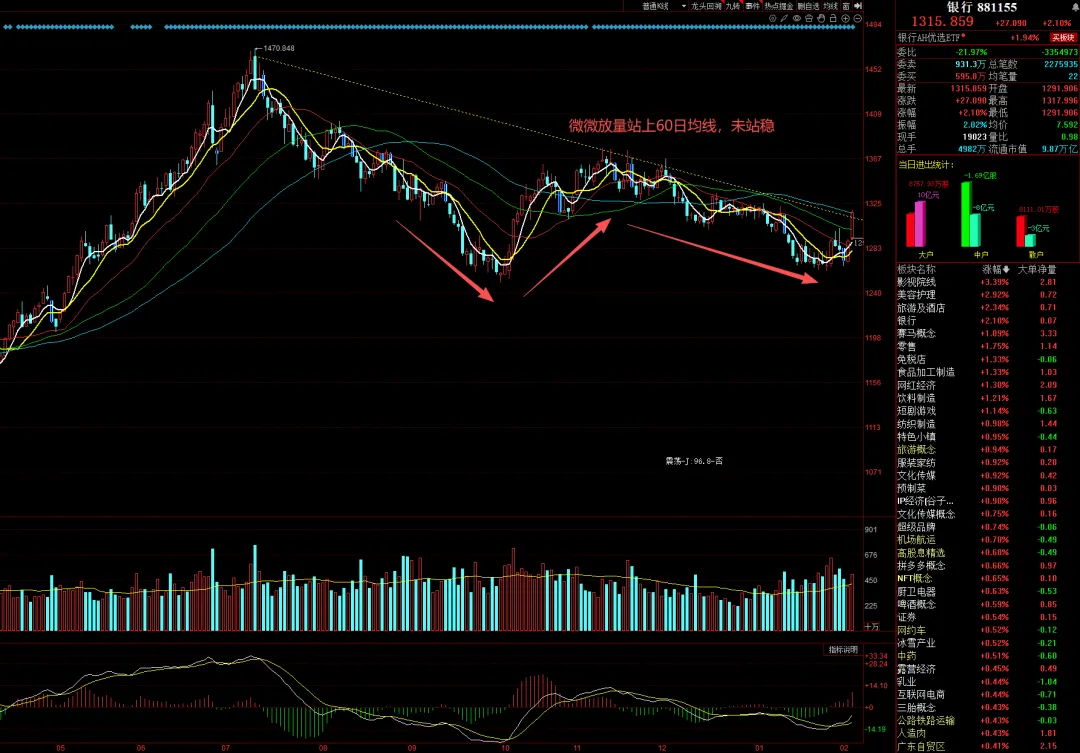 【重要提示】本文仅是个人交易复盘笔记。文中所提及任何观点及个股仅是举例。股市有风险,投资需谨慎。A股三大指数今日集体下跌,截至收盘沪指跌0.64%,深成指跌1.44%,创业板指跌1.55%,北证50指数跌2.03%,沪深京三市成交额21943亿元,较上日缩量3090亿元,三市超3700只个股下跌。 昨天大涨的光伏、煤炭今日大跌,贵金属继续退潮,今天是过节消费行情,市场大幅缩量,科技普跌。很多科技票已经跌了不少了,但碍于节前效应以及“不靠谱”的作乱行为,机构等资金也不愿大幅进场,仍属磨盘阶段。 平均股价一度跌幅达到-1.6%,杀伤力很大,主力也是借机吸收恐慌筹码,下午证券出来护盘,情绪才有所缓和。在盘后没有大的利好消息助推的情况下,明天难有大的行情。 但话说回来,USA至1月31日当周初请失业金人数 23.1万人,预期21.2万人,前值20.9万人,不及预期,若美股晚间能有一定幅度的反弹,在慢牛行情下,科技方向明日有修复可能,但鉴于科技股大多是下跌趋势,筹码整理时间不够,短期不看反转,即便春晚以及deepseek有新模型发布的预期,短期也难以再次走出主升行情,短线反弹是减仓的机会,至于节前能反弹多少,就看主力安排了。 市场分为进攻型、防御型、周期型三个类型大板块,进攻型、周期型都不行,市场就切换到了防御型板块。 这几天对持有算力、机器人、智能电网、半导体、锂电池等新兴产业的人来说,持股体验是特别差的,忍受不了的可能已割掉。这里就涉及到92科比所讲的三种重要交易方法,主升龙头、补涨和切换中的切换行情,这需要我们熟练大A的炒作,并且每天做好复盘,做到术业有专攻,敏捷做好应对才行,需要有一套选股、持股、卖出的方法,对短线及小波段操作来说,有时候卖飞都好过反复地忘我做T,等账户大的负反馈出来后,才发现自己已深陷主力下砸的下跌趋势当中。1、数字货币