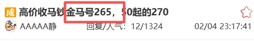 10:40 交易频道四马小版对号25元/版有160版卖盘