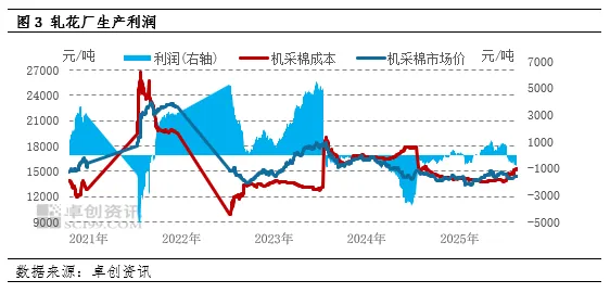 2025/26年度新棉上市后,轧花厂收购谨慎,籽棉价格未明显上涨,但加工皮棉初期受丰产以及集中上市压力下,轧花厂盈利不足,之后随着皮棉价格上涨,轧花厂盈利情况逐步好转,尤其是轧花厂集中售棉集中于11-12月,集中售棉期间,利润明显改善。据卓创资讯监测,截止到12月31日,2025/26年度新疆轧花厂平均加工利润为230.86元/吨,同比增长1403.07元/吨。 近五年新疆皮棉加工数据显示,生产商大多实现了盈利,但这一趋势在特定时间段被打破,2021年10月至11月、2023年10月至2024年10月和2025年9月至10月,新疆棉花加工陷入持续亏损状态。尤其是2021年,棉花上市后,轧花厂因成本激增,一度亏损超6000元/吨。造成本轮亏损的主要原因在于前期持续盈利环境下,轧花企业大幅扩张产能,导致行业产能过剩。棉花作为季节性农产品,其交售窗口期较短,使得部分轧花厂为争夺籽棉资源而不得不提高收购价格,使得皮棉生产成本攀升。2023-2025年新棉上市后,轧花企业汲取了前期的教训,籽棉收购初期采取保守态度,有效控制了皮棉加工成本上涨,从而避免了重大亏损的局面。(卓创资讯高级分析师 高飞堂)
