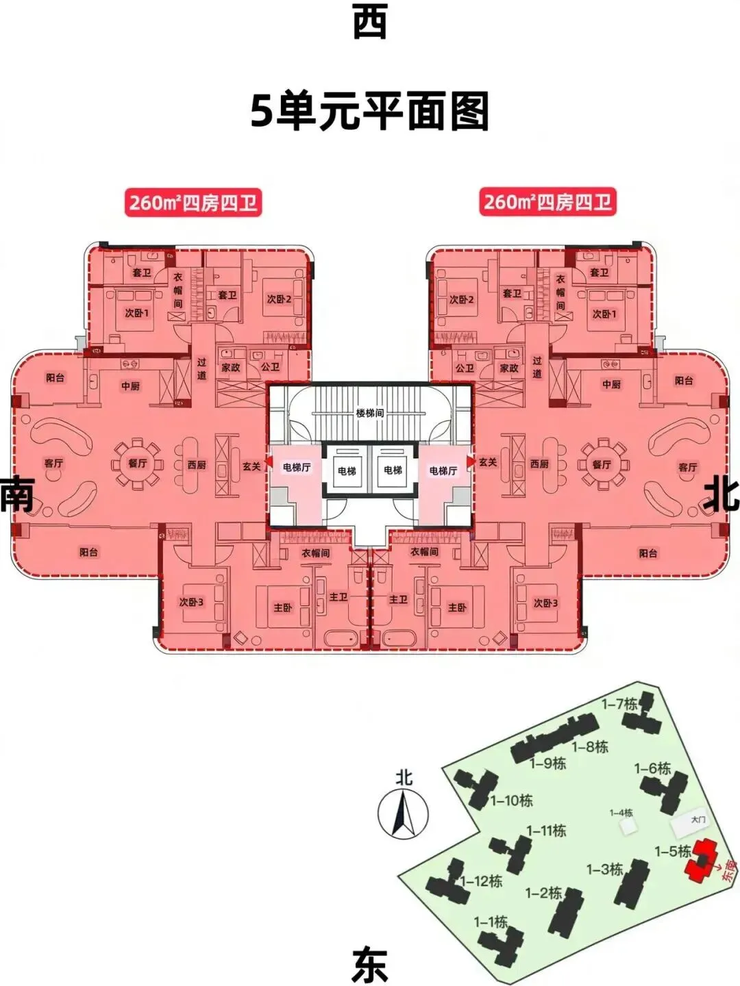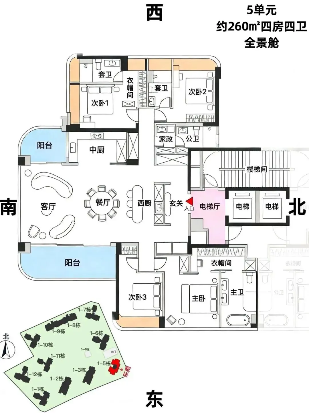 260㎡4房4卫总价约3900万左右