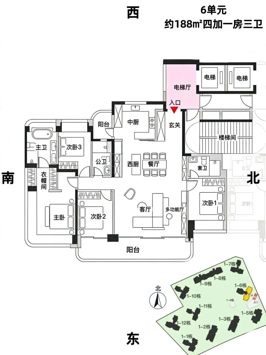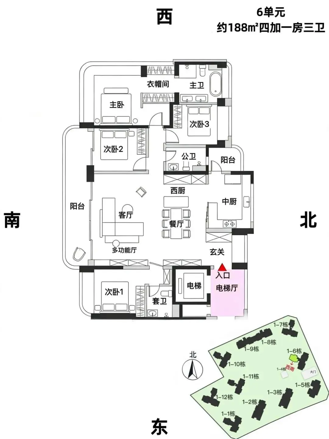 188㎡4房3卫总价约2400-3000万