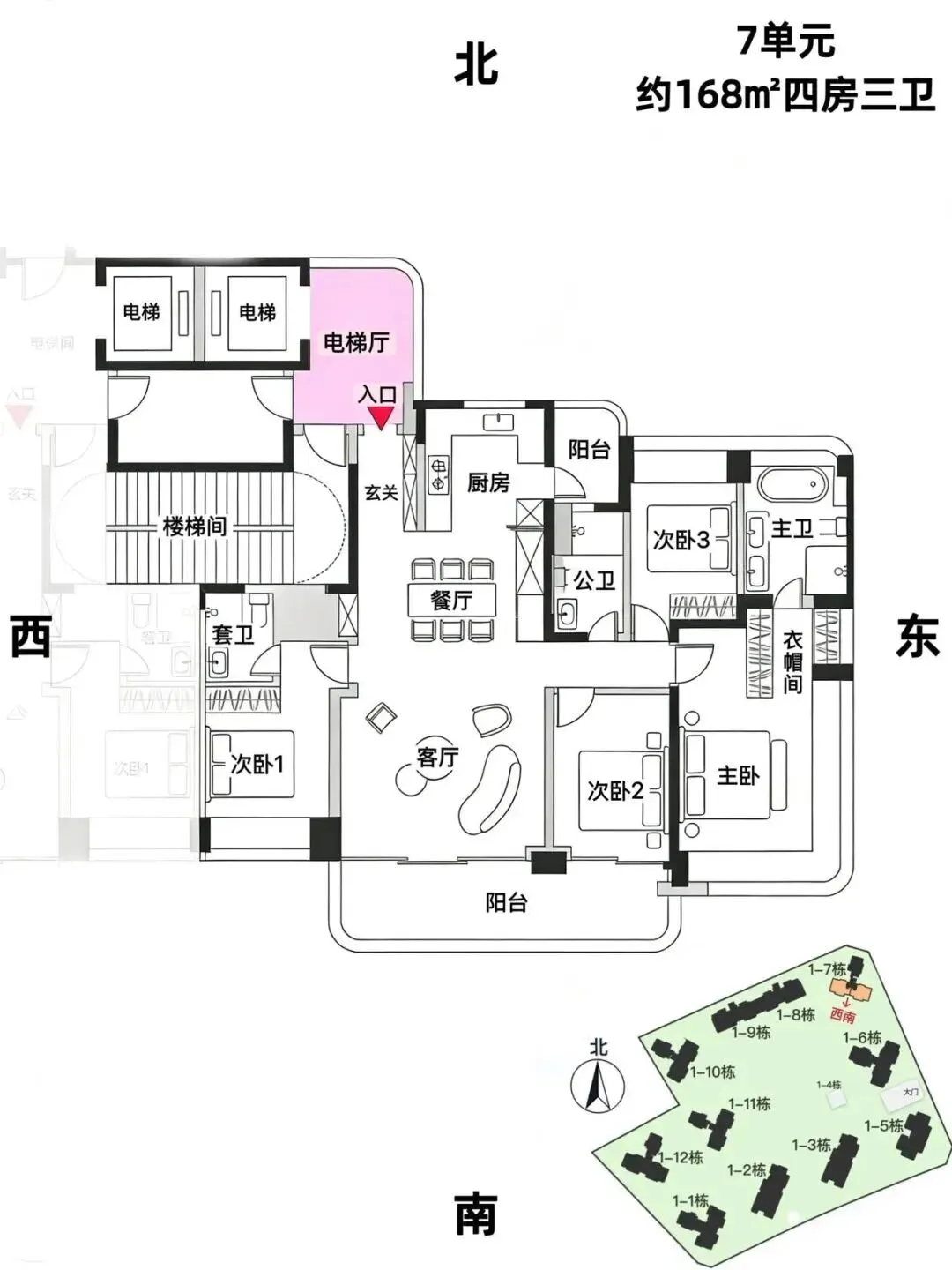 168㎡4房2卫总价约1900-2500万