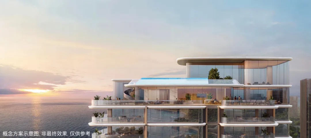 从效果图来看,户户阳台尺度豪奢,看向欢乐港湾海景及前海城市景观,顶复还带泳池,十分豪奢。项目楼栋采用点式分布,楼体限高80米,户型采用新规设计,得房率接近100%。其中2、3、5、8、9单元,2T2户,板楼设计,打造约193-253-260-332㎡大平层。2、3、5单元东南向/西南向享海景,8、9单元东南向看花园享最大楼间距,也有部分海景。全明通透设计:南向面宽达14–20米,客厅与多间卧室衔接观景阳台,实现最大化采光与通风;