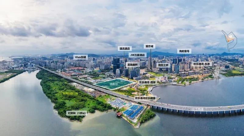 无缝衔接中央绿轴生态廊道与欢乐港湾15公里海岸线,联动壹方城、湾区之光等百万级客流商圈。