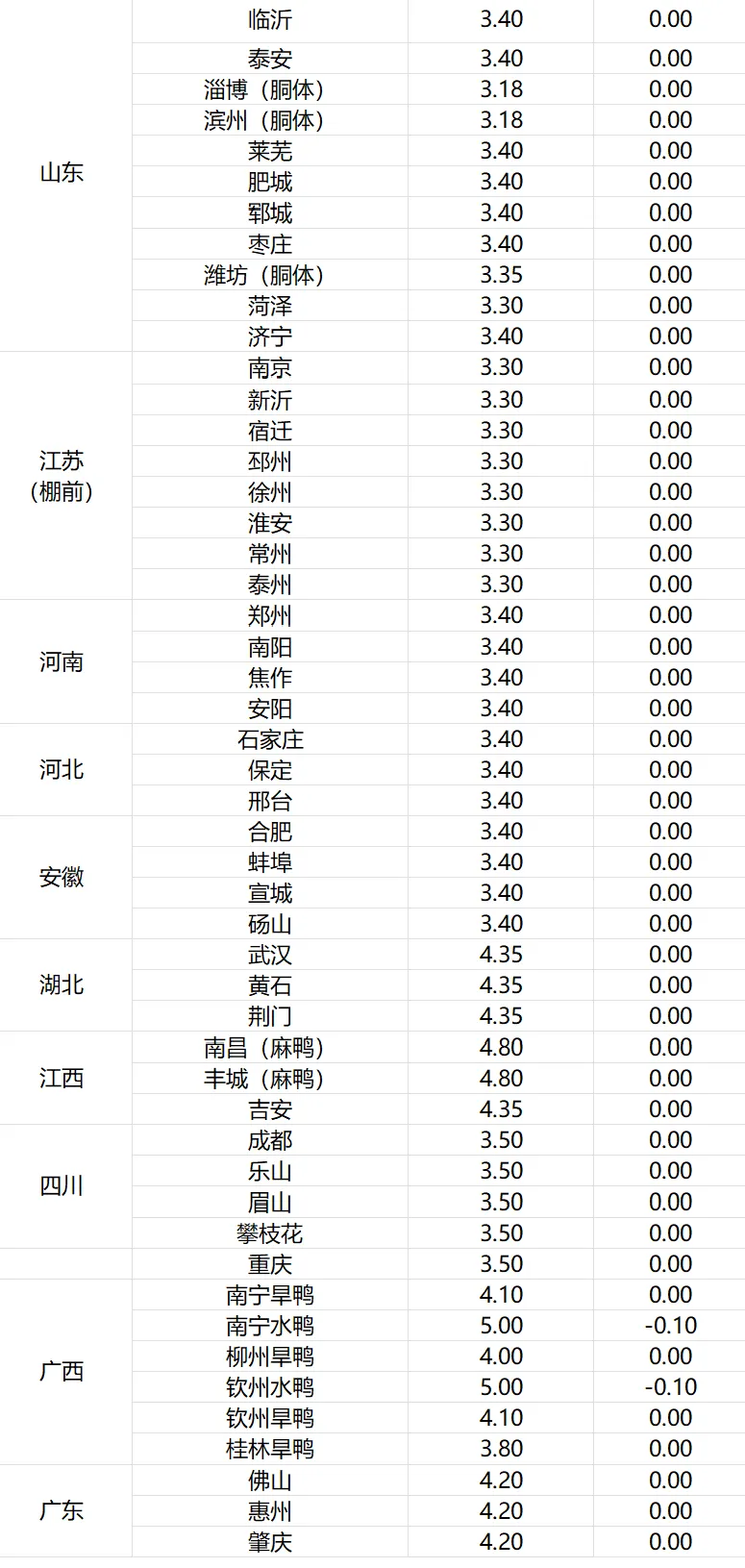 1、明日鸭苗(单位:元/羽)