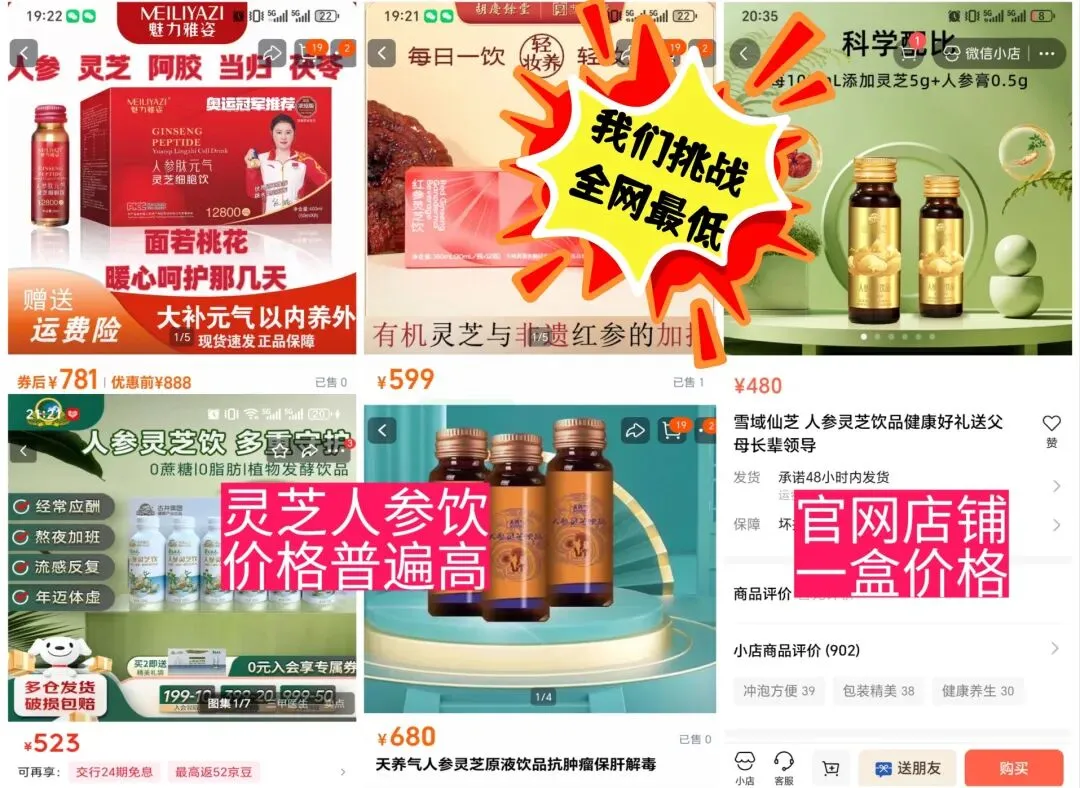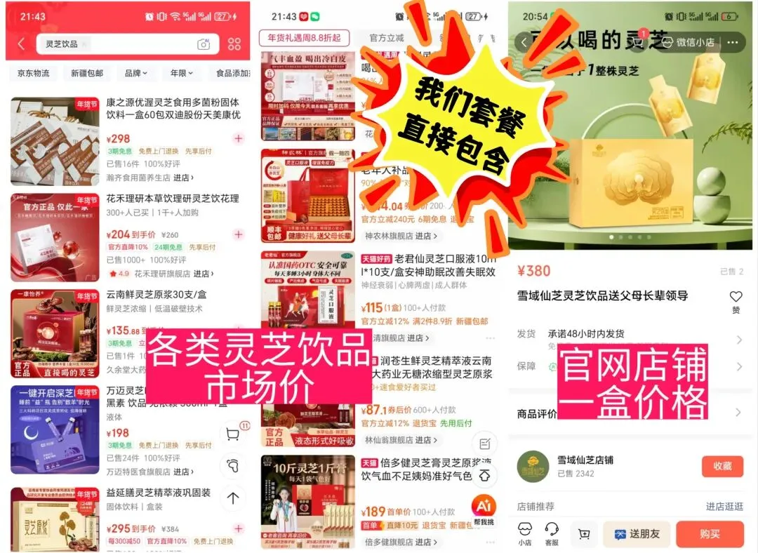 明星产品都在套餐里,相当于花了一份灵芝鹿鞭人参饮的钱,买回去全家人的产品