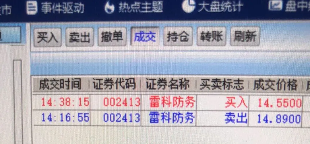 昨天所持个股都没有达到买卖标准,就只做了雷科的T……雷科上午一路下砸,下午开盘后再次到13.66元的低位附近,就掉头上攻,离我的买入挂单仅差几分钱,一路上冲到15元,又震荡下行,最终收于14.65元。