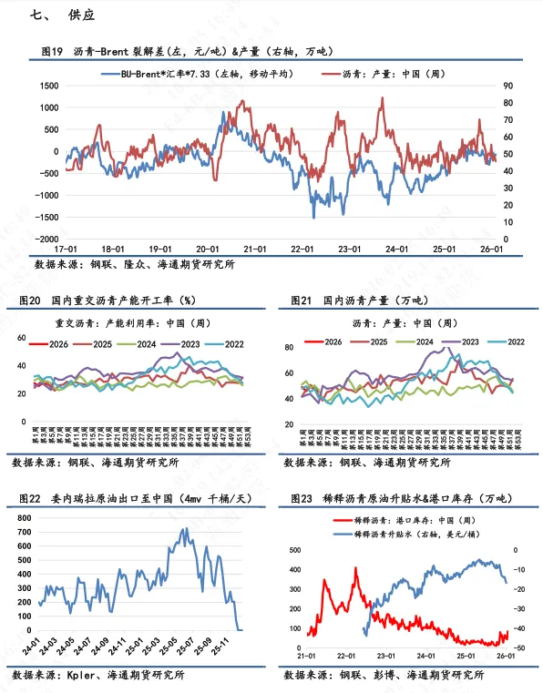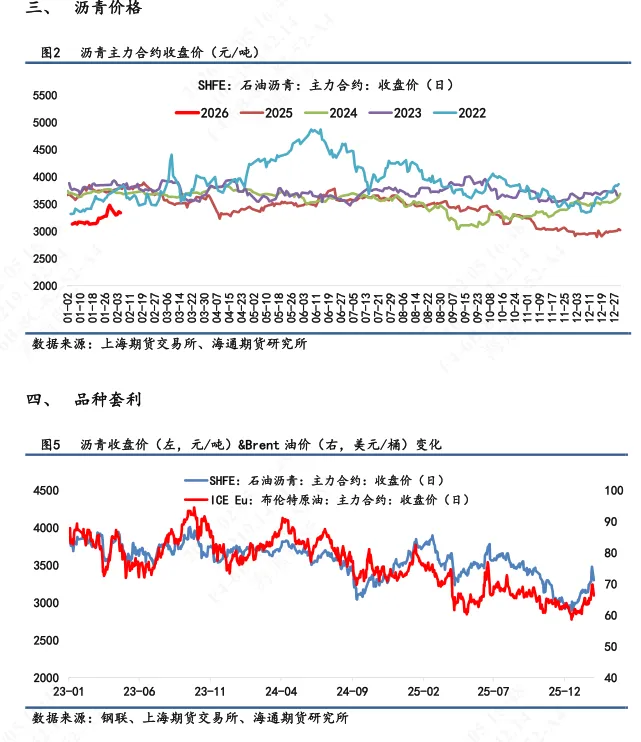 【3】短期展望:沥青向上反弹动力不足,其基本面无过多变化,仍受地缘变化和市场风险偏好影响。地缘方面,在多位中东领导人紧急游说特朗普政府放弃退出谈判的威胁后,原定于6日举行的美伊核谈判计划得以恢复,谈判将在阿曼举行。地缘缓和间隙给予能源类市场溢价降温,沥青跟随回落。市场风险偏好方面,整体贵金属主导的市场情绪低迷,资金流动性不足,沥青价格也受此影响。短期来看,沥青绝对价格围绕地缘局势演绎。关注2月6日谈判结果情况。地缘演绎下能源类品种依旧面临较大波动,谨慎控仓。