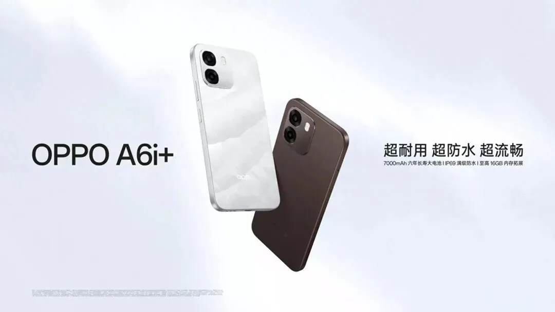 2月2日消息,OPPO A6i+上架官方商城,开售时间为2026年2月6日,8GB+256GB版售价1499元。这是OPPO A6系列第10款机型,核心卖点是满级防水和7000毫安时大电池,还有目前少见的LCD阳光屏,以下是这款新机的详细内容。