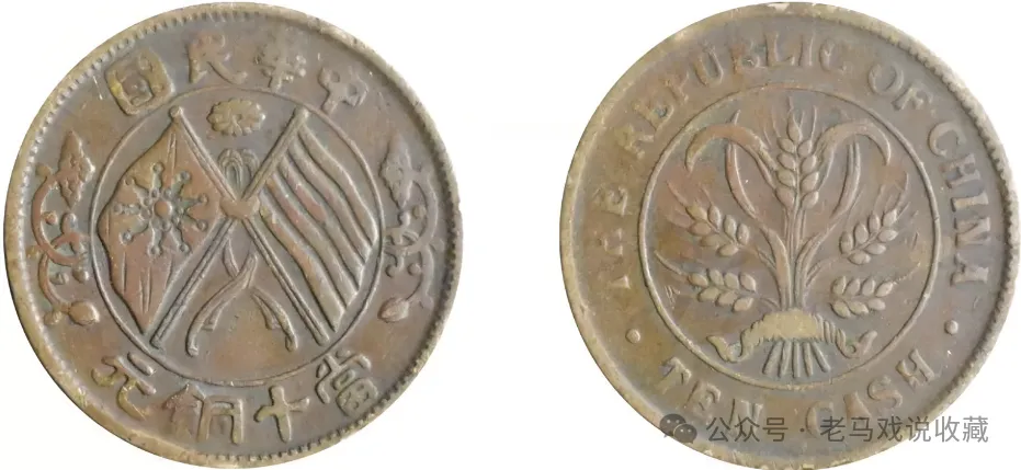 藏品描述:中华民国双旗币当十铜元,直径2.9cm,重9.96g,此铜元正面中心图案为两面交叉的旗帜,双旗间有朵交叉的扁菊,上方环以“中华民国”四字,下方则标明“当十铜元”面值,文字雕刻清晰,笔画流畅,深浅得当,展现了当时铜元铸造的高超技艺。背面以嘉禾麦穗纹为主,周边并有英文标注“TWENTYCASH”,藏品品相较好,币面整洁,钱廓清晰,铜锈自然,包浆入骨,锈色古旧,成色匀整,色泽均一,图文考究,工艺精美,古朴端庄,素雅高贵,岁月流痕鲜明,历史沉淀丰富,具有非常明显的历史过渡性特征,有着很高的历史价值、艺术价值和收藏价值,经济价值极其可观,是一枚可遇不可求的古钱币精品。