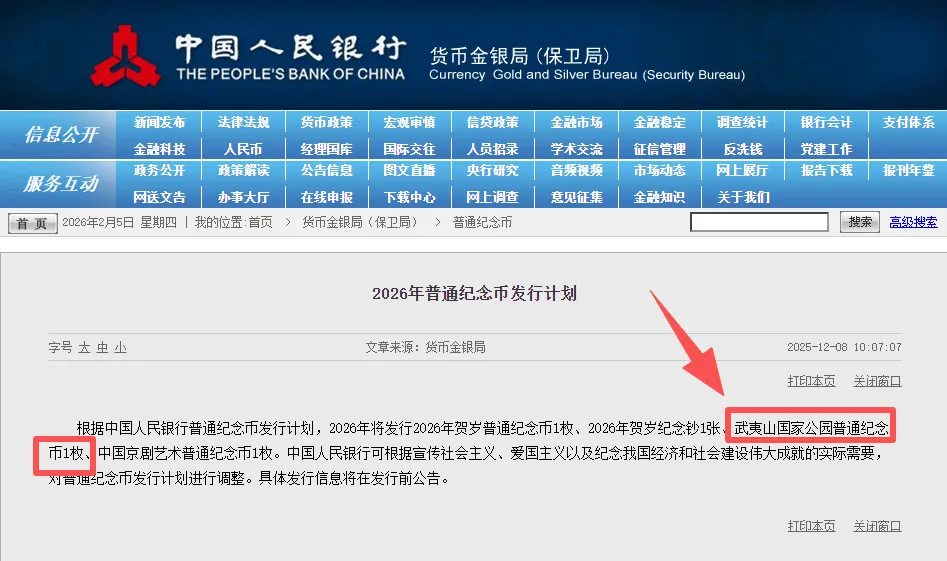 - 武夷山国家公园纪念币(预计6月):国家公园系列收官之作,题材稀缺、群众基础好,面值10元,每人限约20枚,大概率“秒空”。