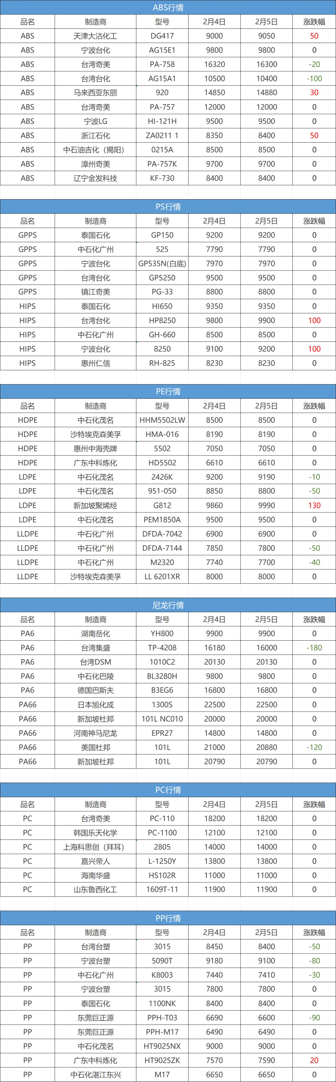 周四国内能源化工市场全线回落,丙烯领跌1.87%,塑料领跌1.81%,PP跌1.48%,PVC跌1.10%,PTA、对二甲苯、苯乙烯、瓶片等均有不同程度跌幅。下面一起来看下今日现货价格: