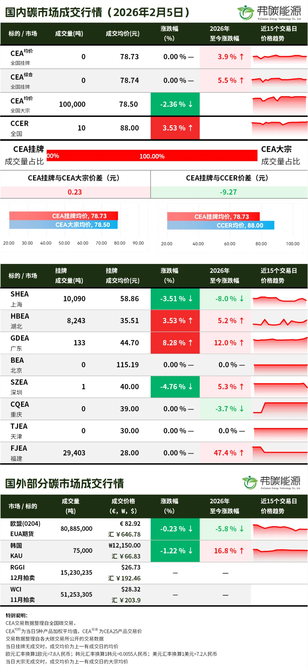 >碳市行情26.2.5 | CEA挂牌无成交,大宗成交10万吨,成交均价下跌...