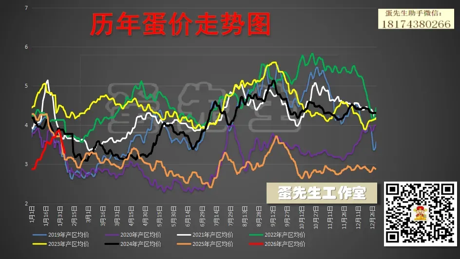 昨天(2月5日星期四)全国蛋价继续走弱,河粉延续前天再度大落,山东河南等局部暂稳,各地走货偏慢。昨天产区均价3.29/斤,较前天下跌0.1元;销区均价3.64元/斤,较前天下跌0.13元。今天(2月6日星期五)全国蛋价稳中偏弱,恐慌情绪蔓延,各地走货偏慢。