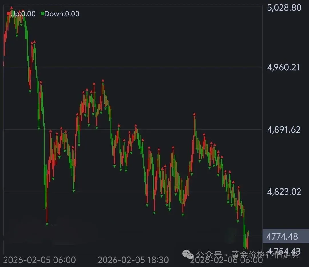 2026年2月6日,今日黄金市场大幅回调,国际国内价格同步走低。国际市场方面,伦敦金现最新报价4774.48美元/盎司,较昨日暴跌235.15美元,跌幅达4.69%,日内波动剧烈,最低触及4754.43美元/盎司。纽约金主力合约同步下挫,跟随伦敦金现大幅回调。