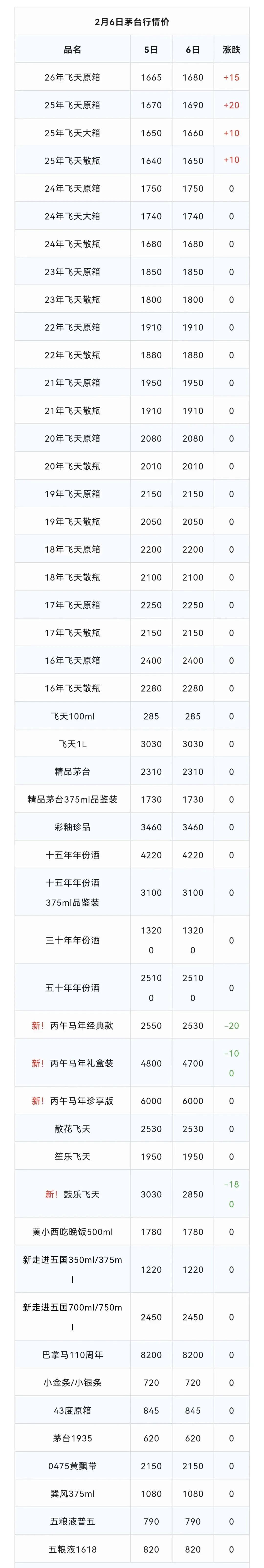 ※行情价:酒商调货价,不考虑物流运输人工成本,每个地区调货价有几十块浮动属正常现象。