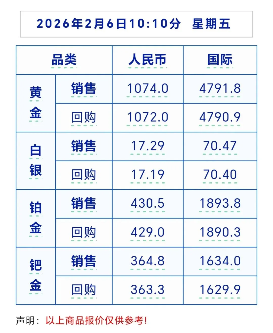 今日贵金属行情(2026.02.06)更新