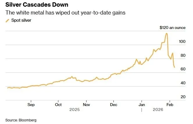 周四(2月5日),现货白银价格暴跌近20%。由于流动性不足,银价在一个仍在艰难寻找底部的市场中出现剧烈波动。