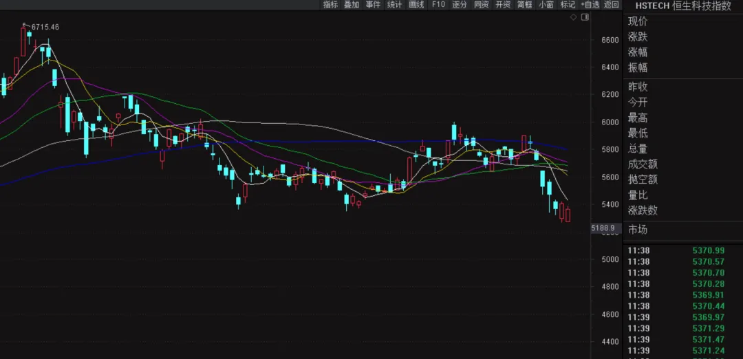 周五早盘港股、A股联袂低开,恒指开盘5分钟下跌至最低-2.2%,A股开盘后两市一度下跌个股高达4900家,不过随后两地市场都在大科技股的企稳背景下出现了震荡走高的局面,尤其需要留意的是恒科的走势,昨日晚间文章我们也对于恒科的走势和影响做了一些简单的分析,今天看到恒科在外盘大跌的背景下,并没有跌穿昨日的最低点,如果短期恒科能站上5日均线,短线情绪和市场风偏都会得到一定提高,同时也会传导给A股市场。