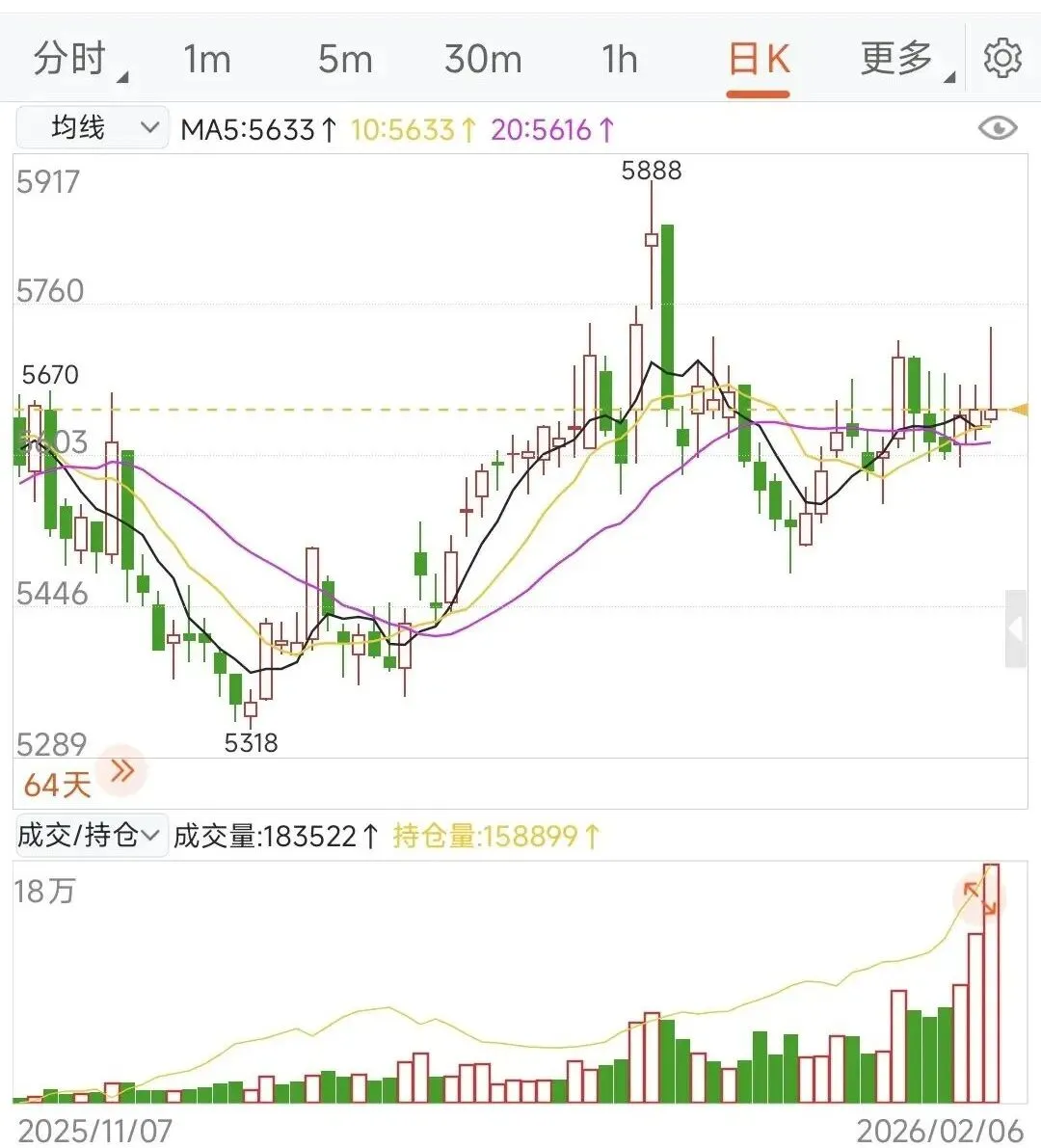 从硅铁605期货合约的盘面来看,当前价格报5650元/吨,较昨日结算价微跌0.07%,波动幅度有限,但成交量与持仓量同步放大,日增仓达16478手,资金入场迹象明显。日K线图显示,价格自前期低点5318元/吨反弹至5888元/吨后,正处于5600-5700元/吨区间震荡,短期均线多头排列,技术面呈现偏多格局。看周线图最近一周明显放量,结合节前这个节点,应该是有不少投资者选择套期保值。- 供给端:主产区环保限产阶段性放松,但冬季电力成本上升使得部分中小企业维持低开工率,行业开工率回升至65%-70%。随着春节假期结束,停产产能将逐步复产,后续供给有温和增加预期。