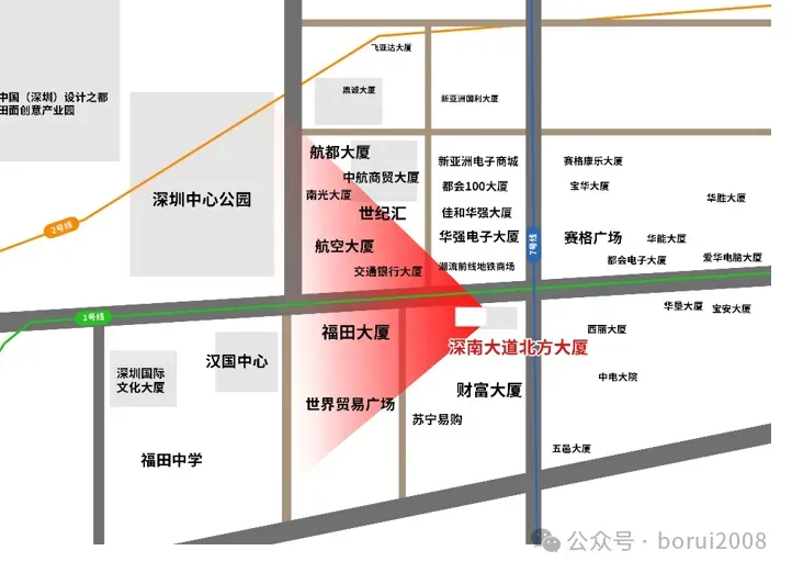 商业优势:位于深圳两大商圈之一华强北商圈核心,这里是“中国电子第一街”,还是亚洲更大的电子专业市场。它以电子市场为龙头,汇集了百货、服装、珠宝、电子、餐饮等几十个行业,使华强北成为多业种、多业态、综合功能齐全的商业集合体。