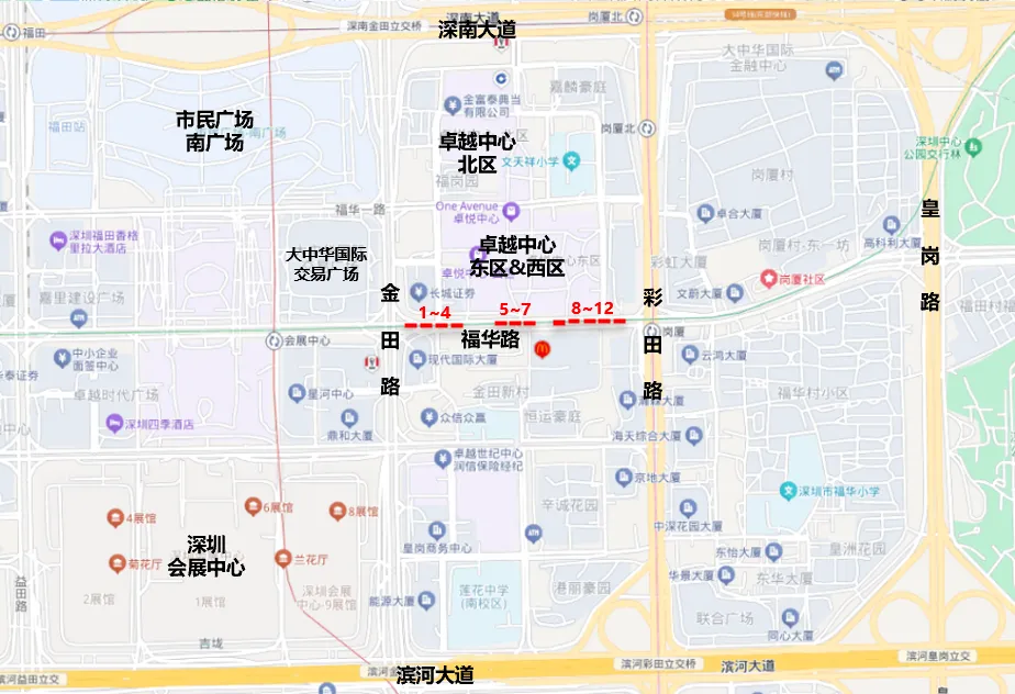 媒体位置:深圳福华路(金田路~彩田路)节日大道LED(共12块24面)
