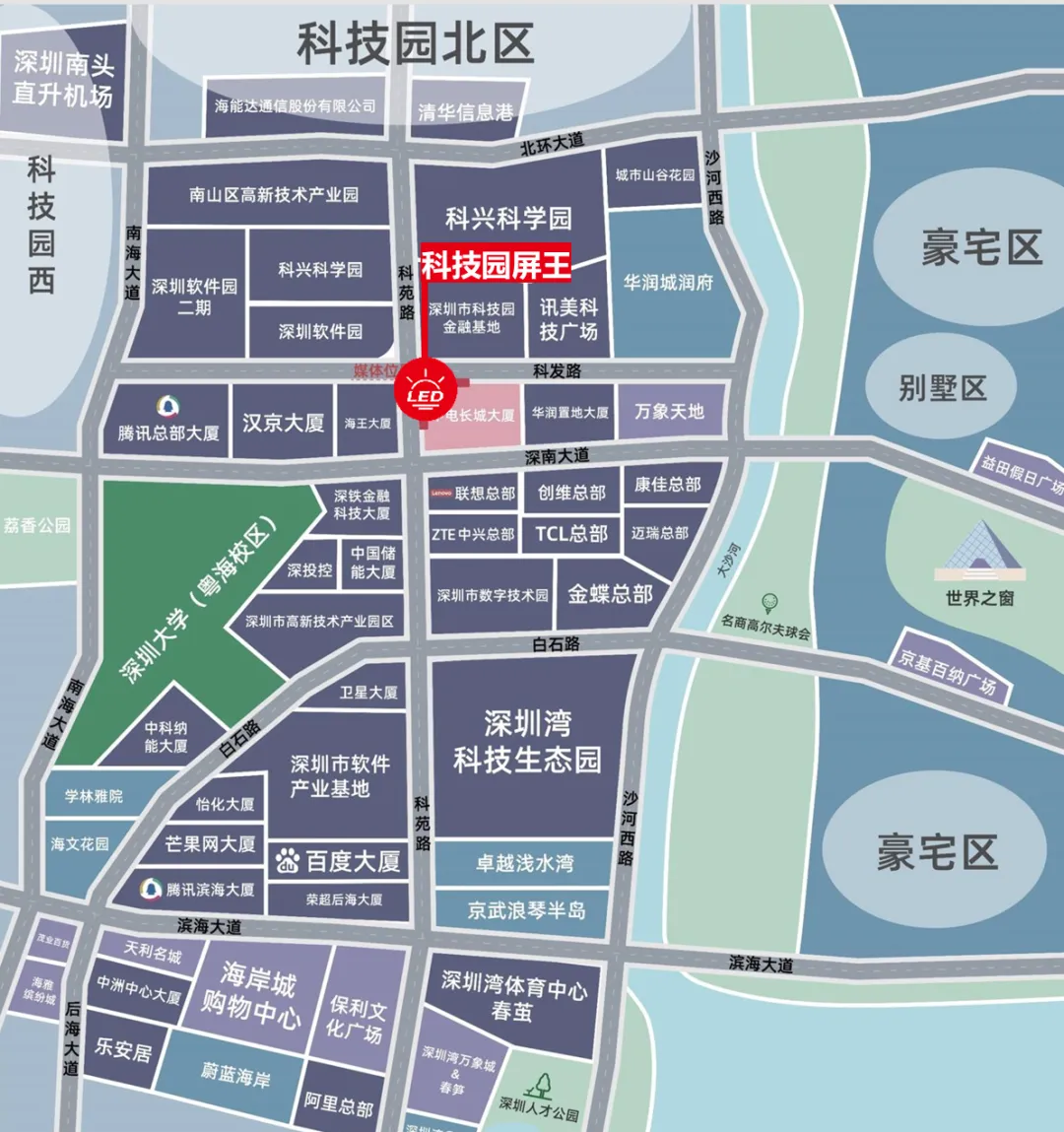 媒体位置:深圳市滨海大道与南山大道交汇处新绿岛大厦