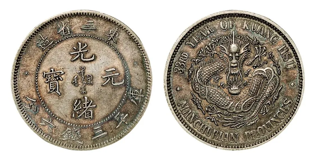 东三省半圆银币我也有 1907年的 龙鳞完整的 带包浆的 少见品种的 近乎没用过 参考价两万五到四万 我花三万一千零五十买的 奉天省造癸卯七钱二分银币我也有 1903年的 满文“宝奉”版的 淡色包浆的 铸打精美的 文字饱满的 保存完好的 品相极美 参考价五千到一万 我花一万四千九百五买的