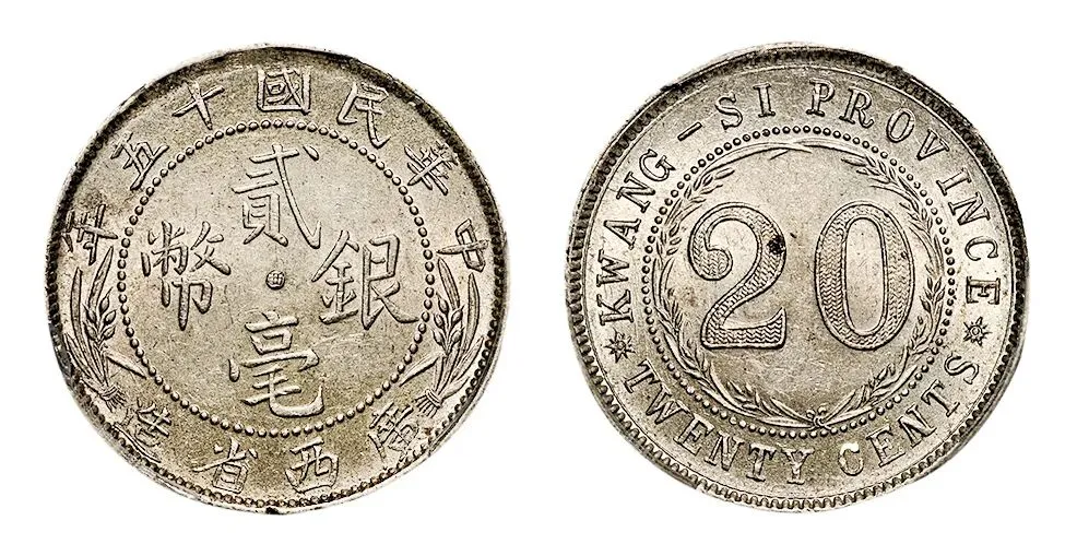 广西十五年两毫银币我也有 民国十五年的 原光的 参考价一千七到三千 我花两千五百三买的 广东省造光绪元宝壹圆银币我也有 1891年的 类镜面底板的 龙鳞饱满的 铸工精良的 近乎没用过 参考价一千到两千 我花一万四千九百五买的 江南省造“壬寅”二角银币我也有 1902年的 细节完美的 参考价六千到一万二 我花六千九买的