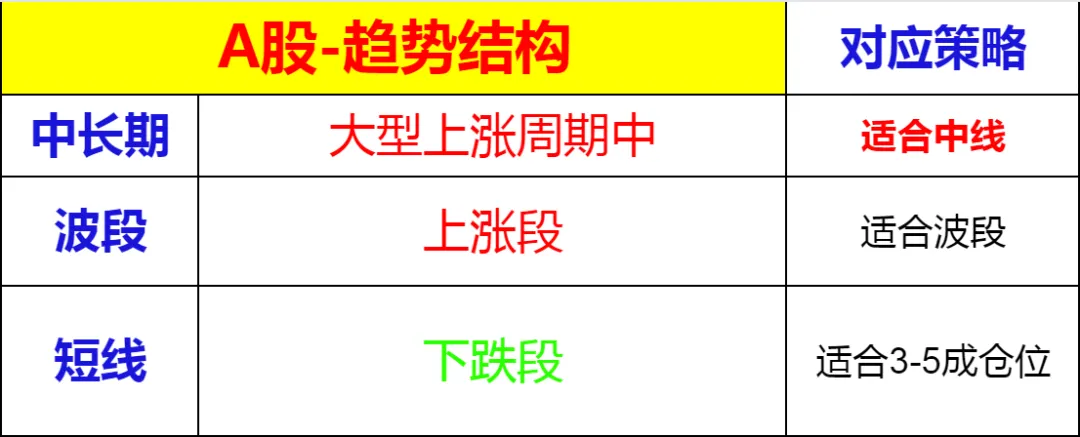 中期上涨周期不变,波段趋势上涨段,短线下跌段。