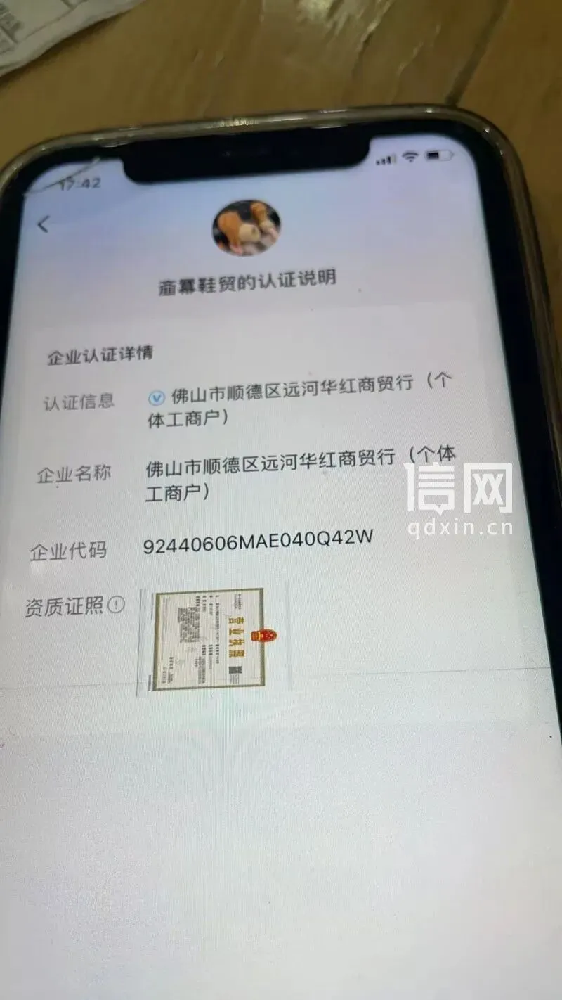 “齑羃鞋贸”平台认证信息。(来源:受访者)