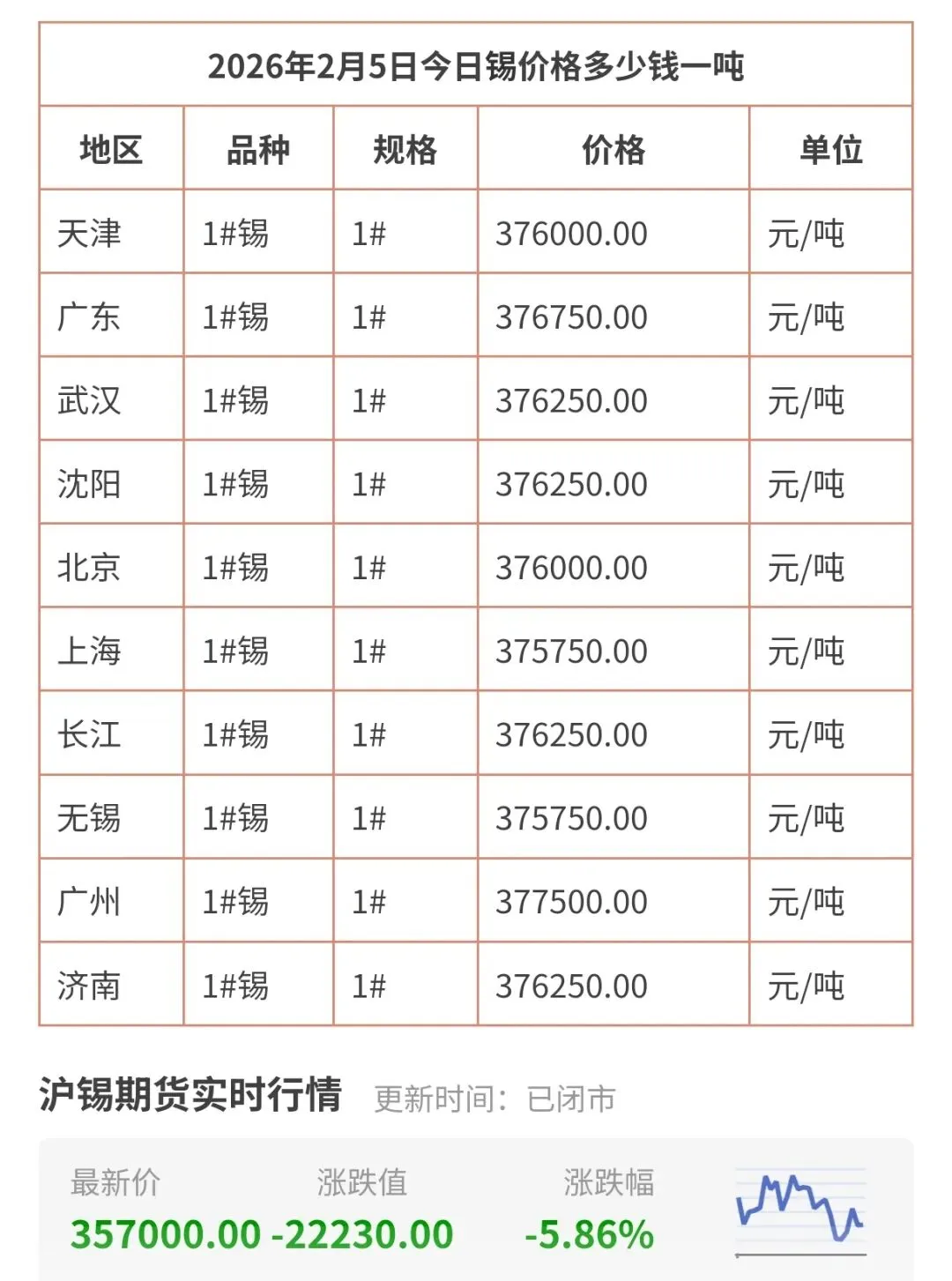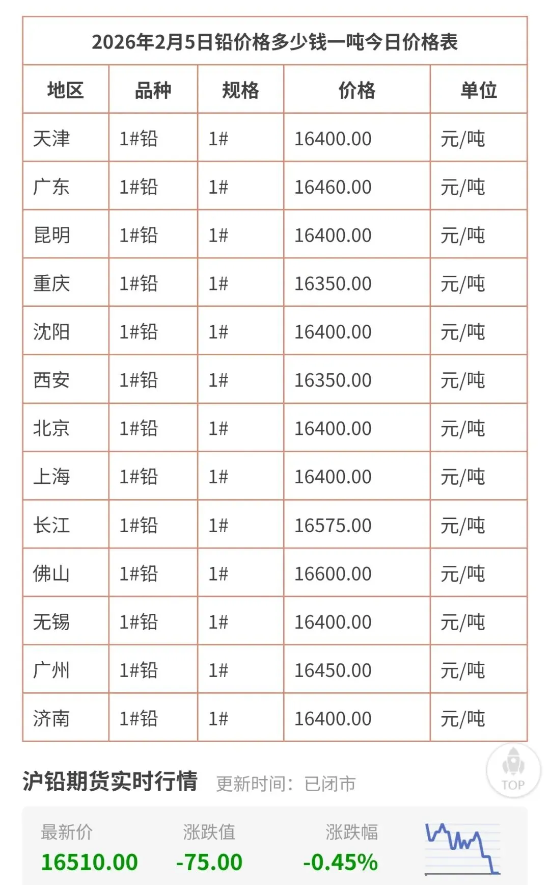 2026年2月6日,今日铅价、锡价、锌价格最新行情走势!包括广东、天津、重庆、西安、无锡、长江等地区现货铅锌锡价格!今天多少钱一斤/一吨查询表