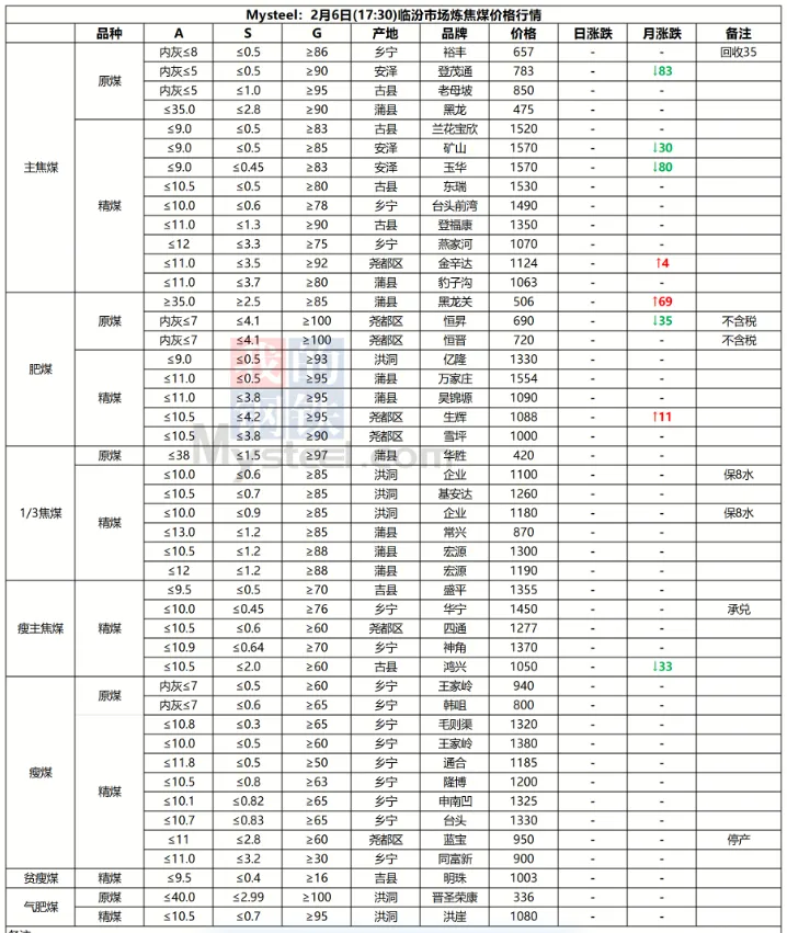 6日太原市场炼焦煤价格暂稳。山西地区个别煤矿已停产放假,多数煤矿正常生产中,民营煤矿放假时间集中于腊月二十三及以后,供应端逐步收紧。需求端,本周少数低库存焦企适当提库,带动部分资源降价后成交有所好转,多数补库已接近尾声,以按需采购为主,整体市场交投氛围较为清淡。