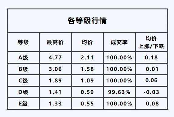A级——最高价4.77元/枝,均价较昨日,上涨0.18元/枝;