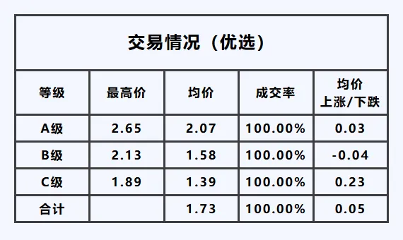 C级——最高价1.89元/枝,均价较昨日,上涨0.07元/枝。
