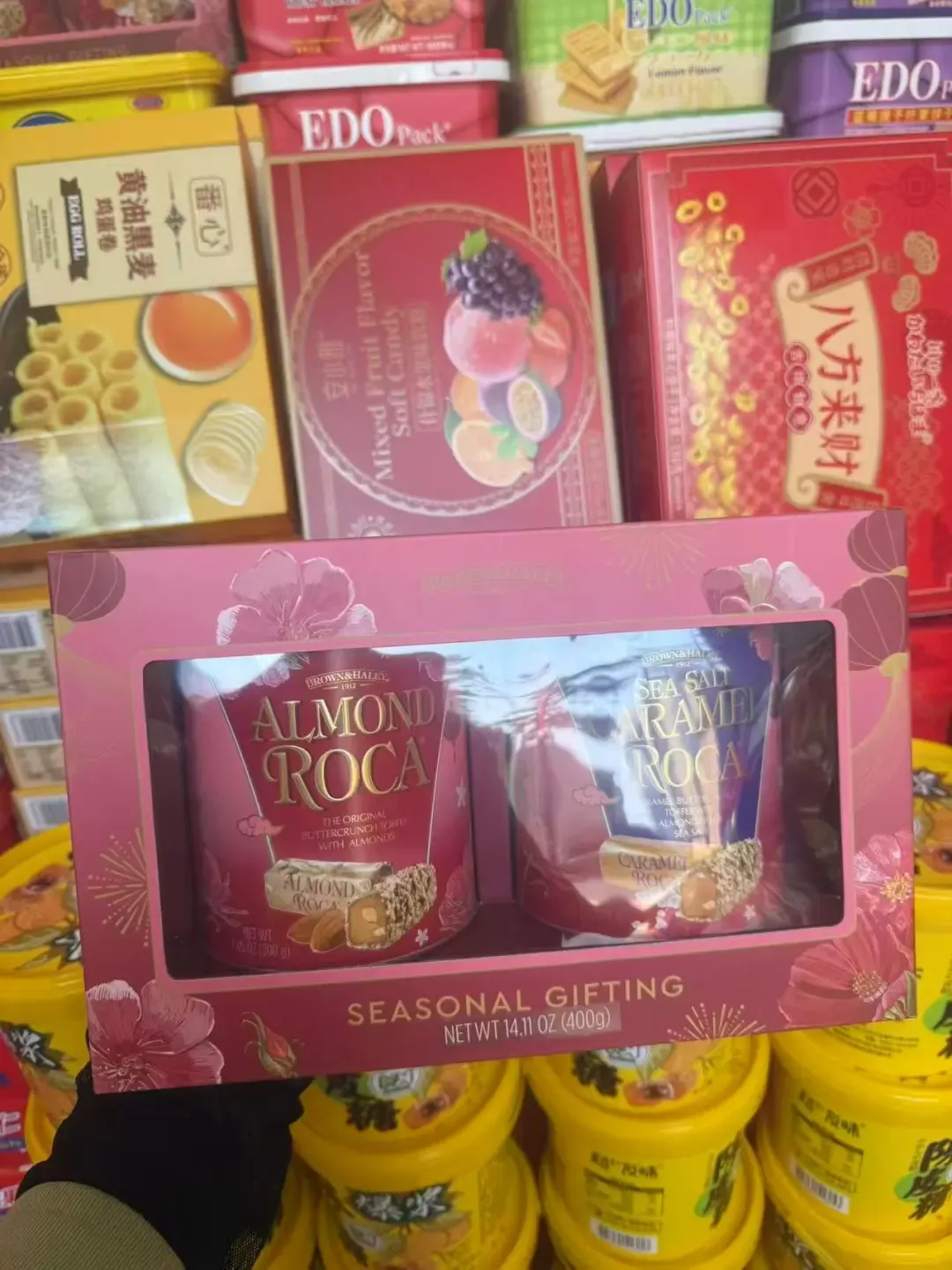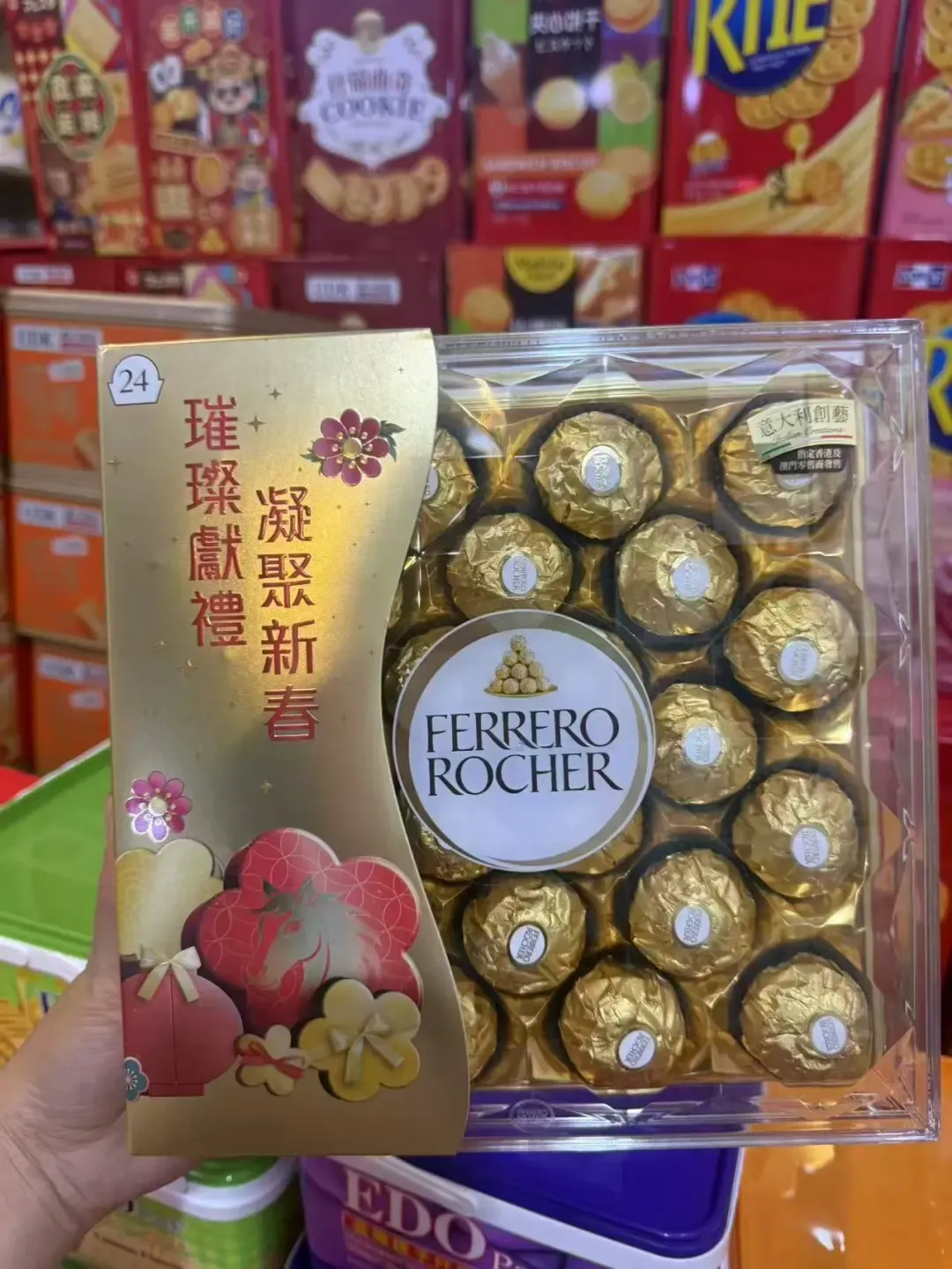 鲜果汇年货大街,每个品种都是精挑细选,年货大惠购,我们最优惠!越早订购越着数,近过年到货价格都会上调,小编已为大家整理好图文资料,实物比图片漂亮,更大盒,欢迎直接到店选购!PS:踏入年尾,供货商休息后无法补货,拜年要送礼的大家记得提前预订哦!原价:单味17元一罐,88一箱6罐,分享预订价:83.8元一箱6罐,过年送礼超值大产品之一正品港版丹麦蓝罐曲奇908g(市面好多假货,认准购买)意大利费列罗金莎巧克力 T24(市面好多假货,认准购买)