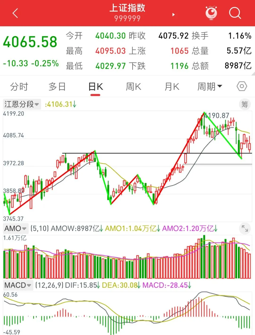 今天指数受外围影响早盘大幅低天,这种有经验的都知道大概率会低开高走,加仓做T非常完美,尾盘这跳水非常好,收周K阴线才是回踩的性质,如果今天尾盘不跳水周K是红K、周一、二大概率还是横盘震荡,现在收阴K下周大概率涨为主,除非周一开破4030平台位置,这机率不大,所以下周大概率红包行情,科技票整体受到老美那边影响这一周也是回踩比较大,易中天这些本来是属于机构抱团,涨多才是最大的利空,业绩好也不管用,这些大概率进入慢跌向下状态了。