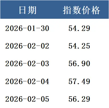 2026年2月5日,上海碳价格指数为56.29元/吨,较上一交易日指数价格下跌2.09%。指数历史数据如下表所示: