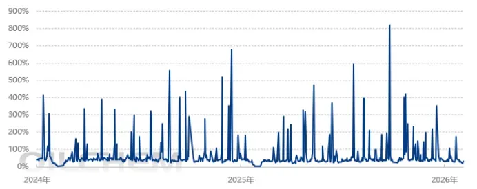 2024-2026年国内涤纶长丝产能利用率趋势图