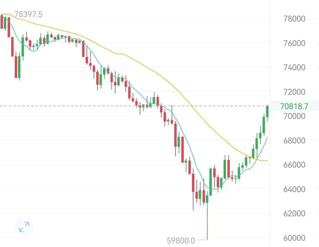 K线是市场的呼吸,涨跌是它的心跳。别在暴涨时误以为自己是大神,也别在暴跌时认定自己是韭菜。真正的价值往往诞生于无人问津的寂静里。比特币/以太坊近期连续大幅下跌,整体下跌幅度相对较大,接连跌破前期一系列重要节点支撑。随后早盘在59900及1740低点展开反弹拉升,整体拉升幅度相对还比较大。像这种大跌后快速反弹拉升的行情基本都会伴随着修复整理,待修复整理后不破阶段低点行情还将继续反弹拉升。