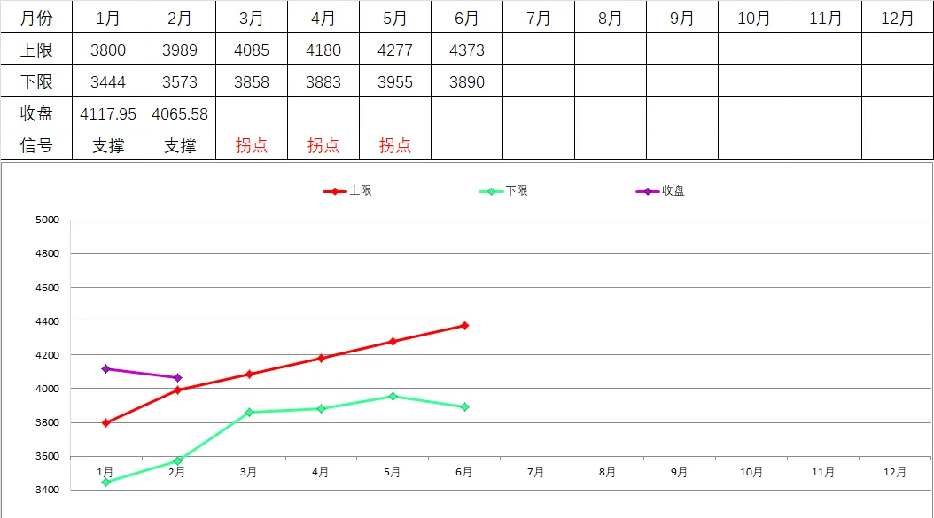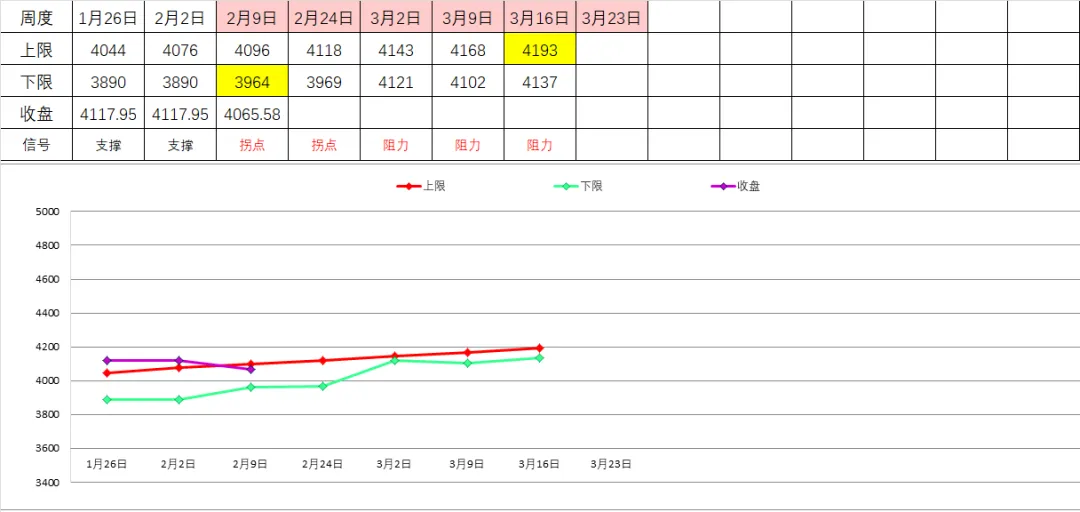 月线2月支撑区间为3989-3573点,只要不跌破4000点,中期仍有走强基础。而进入到3月份上限上升到4085点,随后4月份提升到4180,、4277、4373点,所以只有突破4200点一季度才能延续走好走强。