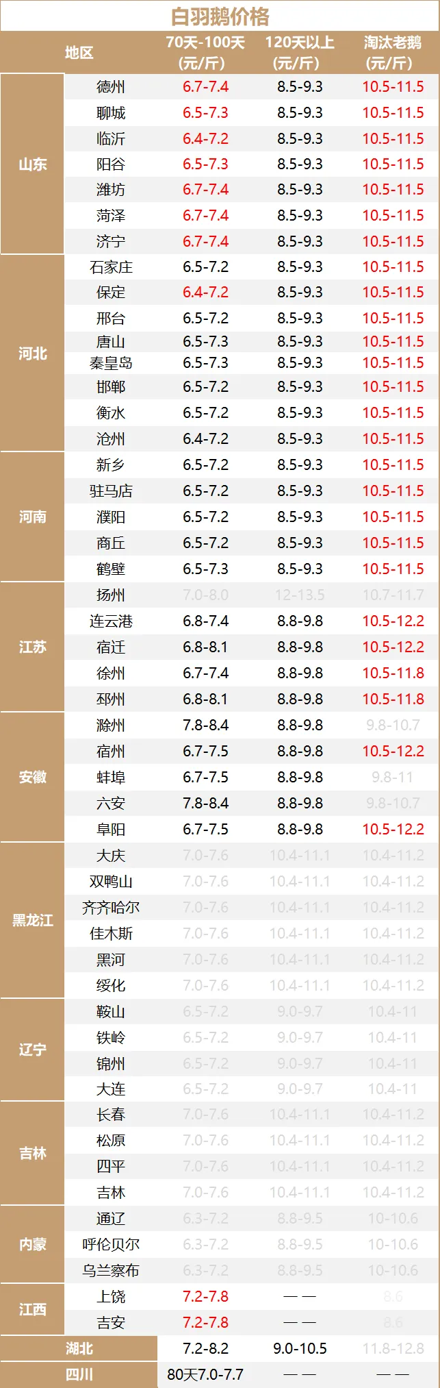 随着北方缺鹅上涨,二育入场心态有所转变,部分地区二育现象增多,多空博弈下,短期内北方鹅价以横盘上涨为主,价格行情依然缺乏长时间上涨的支持。南方鹅价多地继续下跌。